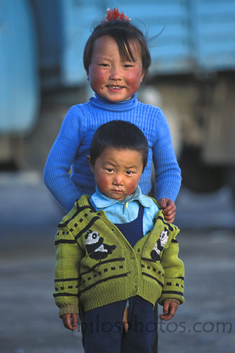 Children at truck stop on highway to Lhasa